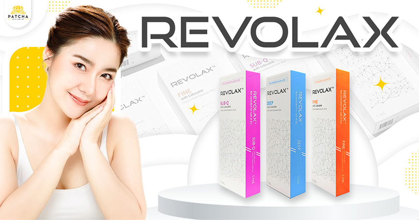 ฟิลเลอร์ Revolax เป็นฟิลเลอร์เกาหลี ที่ดังในประเทศอังกฤษ และวางขายในยุโรปมากถึง 19 ประเทศ ผลิตโดยบริษัท Across ซึ่งใช้เทคโนโลยี HEXALink ในการผลิต ทำให้ฟิลเลอร์มีความบริสุทธิ์ปลอดภัย เนื้อฟิลเลอร์ยืดหยุ่น คงตัวได้ดี โดยในปัจจุบันฟิลเลอร์ Revolax มีด้วยกันทั้งหมด 3 รุ่นให้เลือกใช้ค่ะ